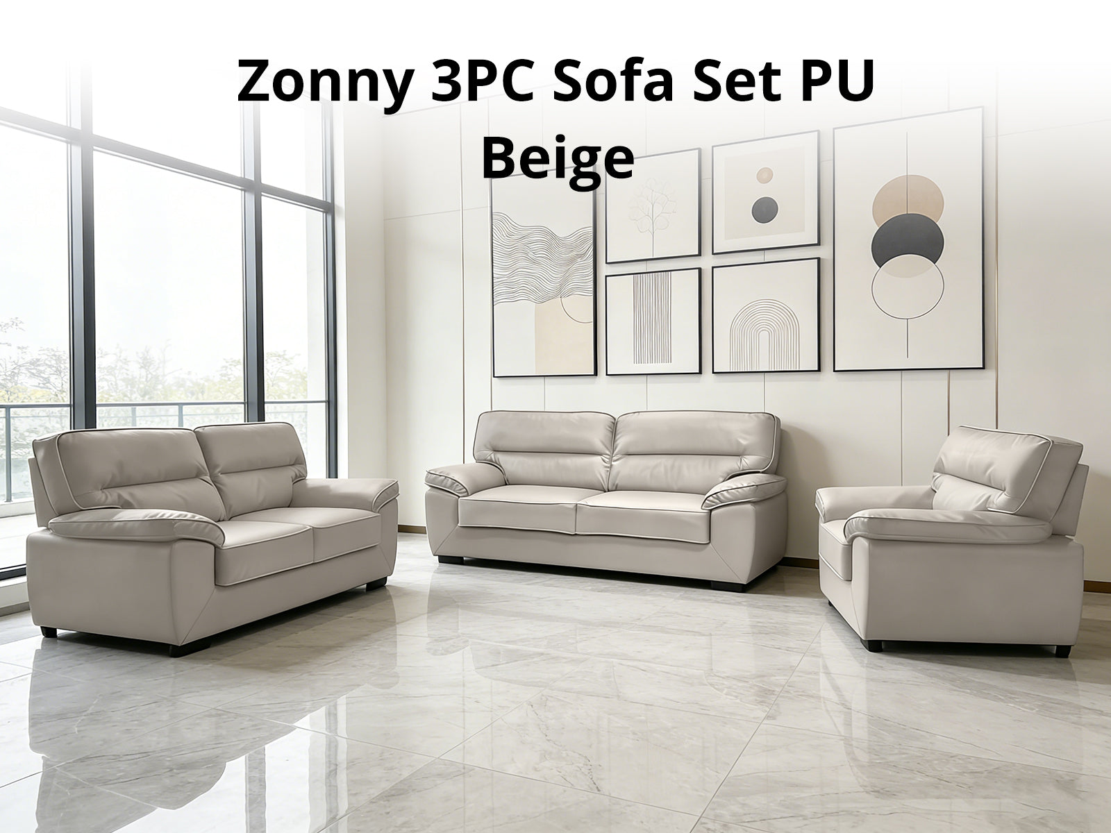 Zonny 3PC Sofa Set PU - Beige