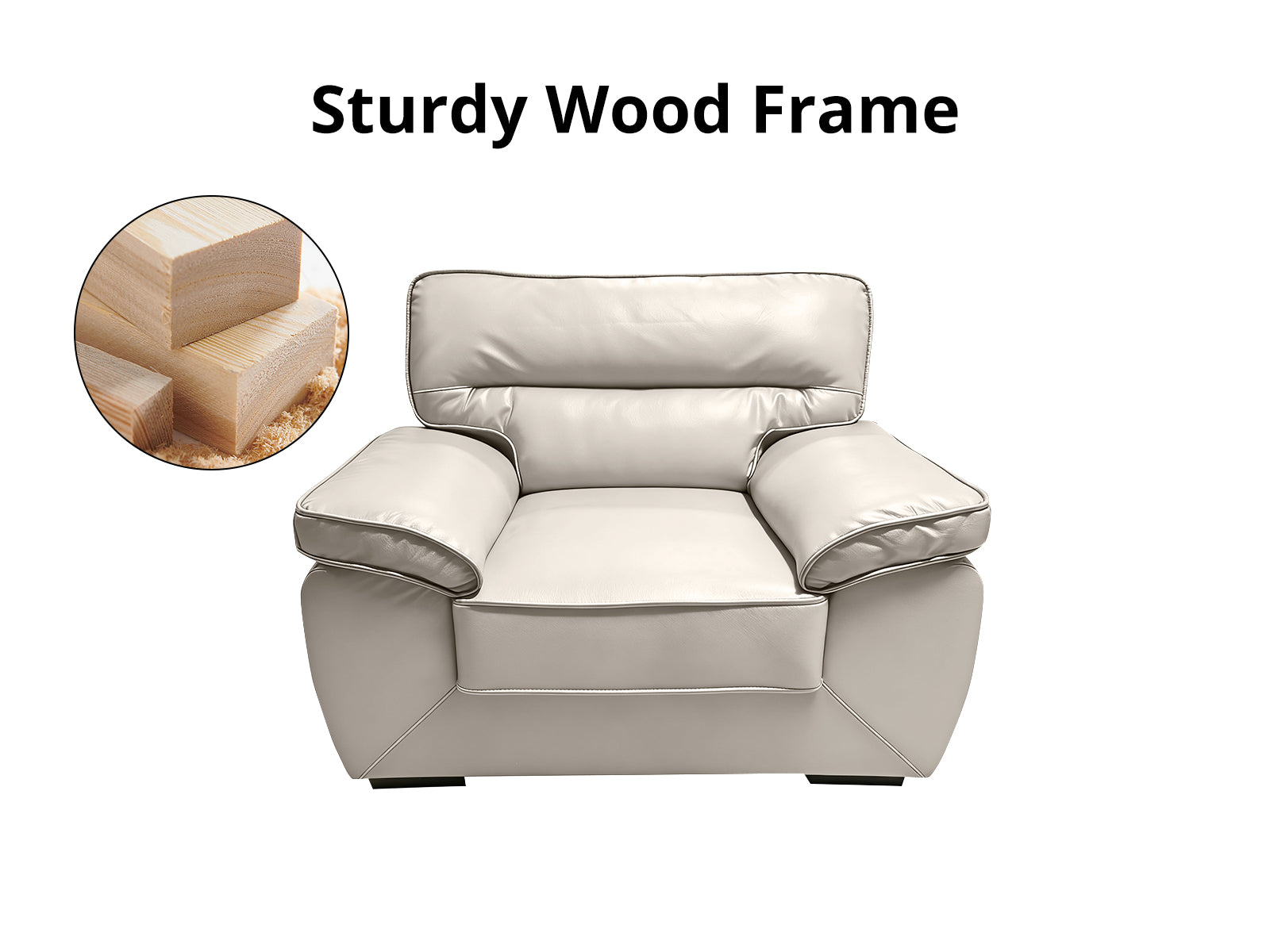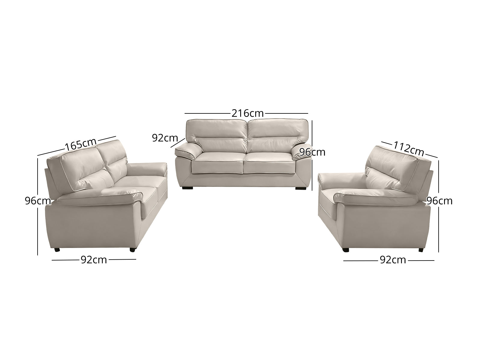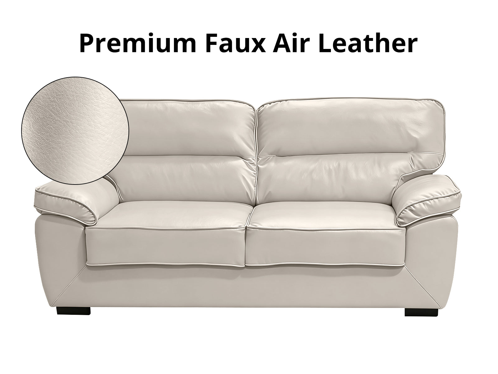Featuring a contemporary look and a streamlined silhouette, this Zonny 3PC Sofa Set will add a pop of personality to your modern living room setup. Consisting of a 3-seater sofa, a loveseat, and a single sofa chair, it is perfect for filling living rooms and seating guests with ample. Expertly crafted with a strong wood frame for maximum support, this set is equipped with durability for years to come. Its clean-lined design is complemented with excellent foam padding for extra comfort, which helps to relax your body when seated. Upholstered with premium faux air leather in a neutral hue for an inviting look, this set will provide you with unrivaled comfort. Arrange the 3 pieces according to your needs and create a harmonious overall look.