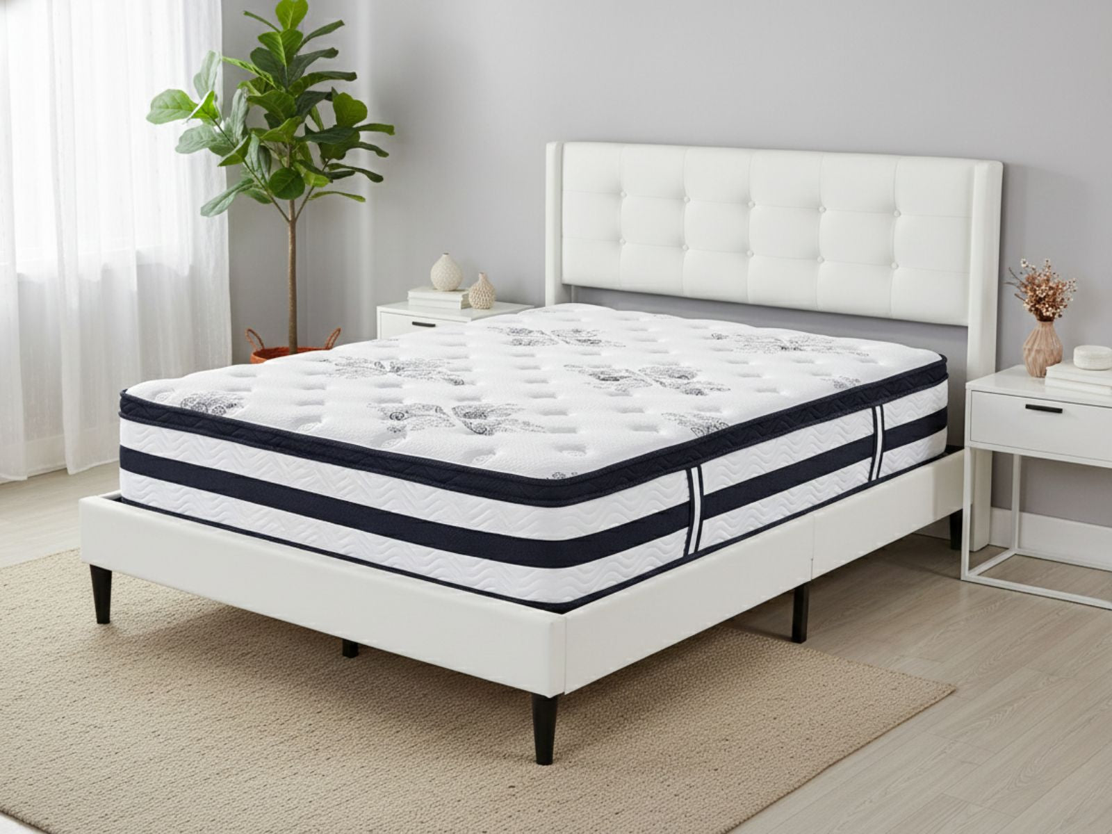 Vele‑C Bed Frame White & Euro Top Mattress K34 ‑ Double (Combo)