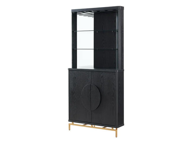Wine Cabinet | Black Finish | Corner Storage with Glass Rack